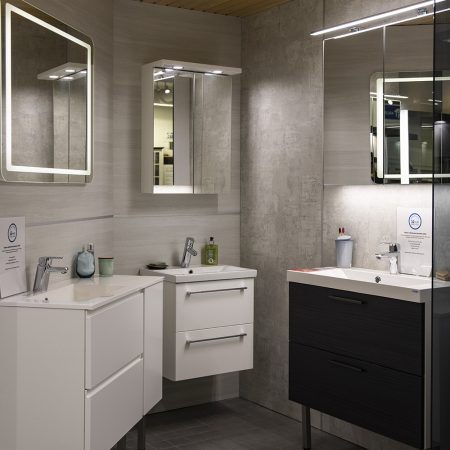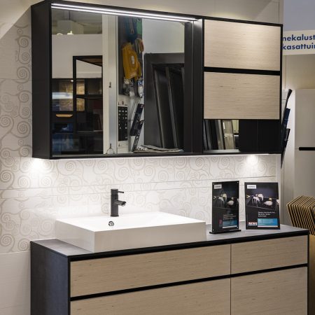 Valikoimastamme löydät laadukkaat allaskaapit, peilikaapit, pesualtaat ja muut kylpyhuonekalusteet. Valmistamme kalusteet tarvittaessa mittatilaustyönä ja voit hankkia meiltä kalusteet niin isoihin kuin pieniinkin tiloihin. Kestävät materiaalimme takaavat tasokkaan ja yksilöllisen lopputuloksen.