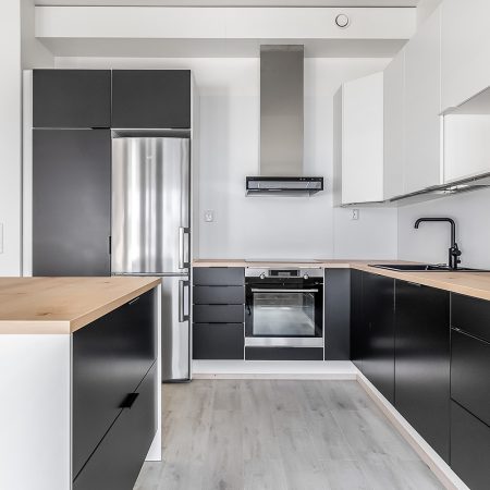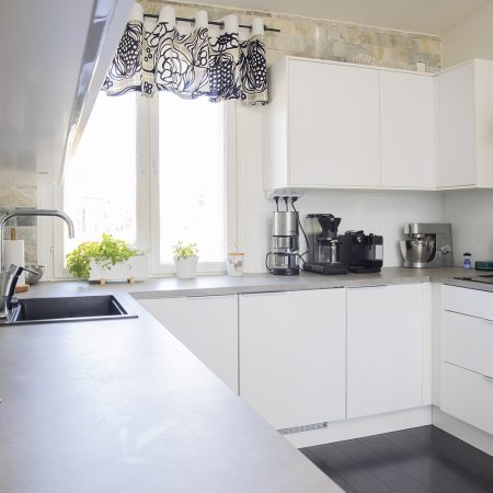 Ovimallit: Kvartetti valkea ja musta Lungo alu ja musta vetimellä, taso koivuviilu laminaatti.