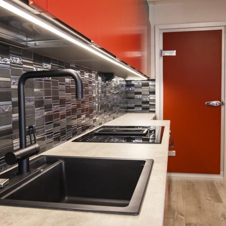 Ovimalli: Aaria puhtaan valkea Lungo vetimellä. Alaovi tekninen viilu lakattu Lungo vetimellä,runko valkea. Tasot valkea kiiltävä laminaatti, välitila Spa-levy valkea ruoko.