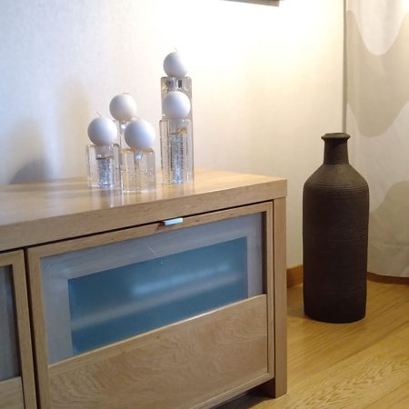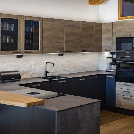Ovet Nano musta Lungo mustalla vetimellä, tasot massiivi tammea öljytty