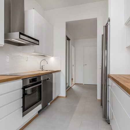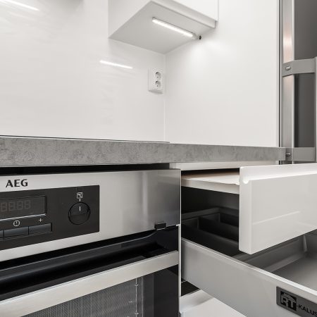 Ovimalli Aaria puhtaan valkea Lungo vetimellä tasot laminaattia, laatikot Blum Tandembox
