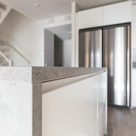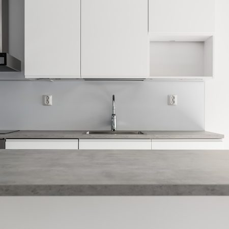 Ovimalli Daalia puhtaan valkea tasot laminaattia, laatikot Blum Tandembox