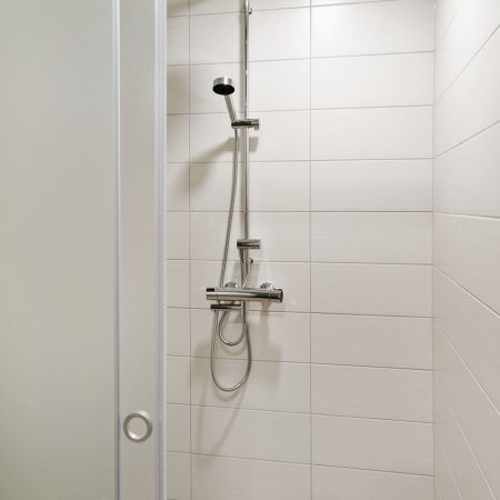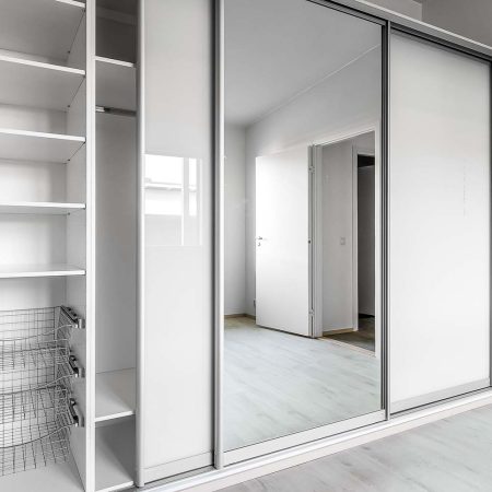 Liukovikaapisto valkeilla lasiovilla, mahdollista saada myös kattoon saakka.